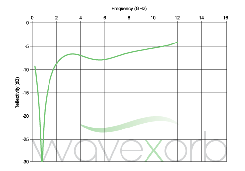 Narrowband Absorbers (also known as Tuned Frequency or Resonant Frequency Absorbers) are single layer materials that absorb radiation at a specified frequency range, typically within +/- 10% of the target frequency. Narrowband Absorbers can be custom formulated to target a frequency by changing the formulation and thickness, are considerably thinner than other types of absorbers, and are the preferred choice for applications where broadband absorption is not required.