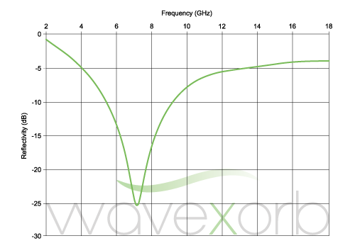 Narrowband Absorbers (also known as Tuned Frequency or Resonant Frequency Absorbers) are single layer materials that absorb radiation at a specified frequency range, typically within +/- 10% of the target frequency. Narrowband Absorbers can be custom formulated to target a frequency by changing the formulation and thickness, are considerably thinner than other types of absorbers, and are the preferred choice for applications where broadband absorption is not required.