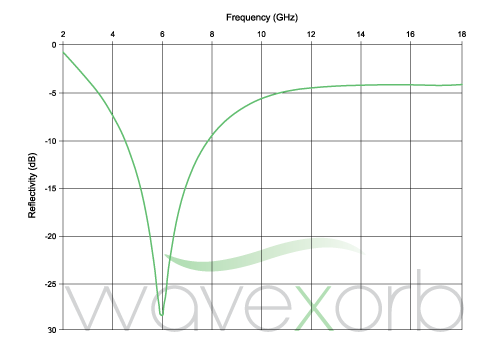 Narrowband Absorbers (also known as Tuned Frequency or Resonant Frequency Absorbers) are single layer materials that absorb radiation at a specified frequency range, typically within +/- 10% of the target frequency. Narrowband Absorbers can be custom formulated to target a frequency by changing the formulation and thickness, are considerably thinner than other types of absorbers, and are the preferred choice for applications where broadband absorption is not required.